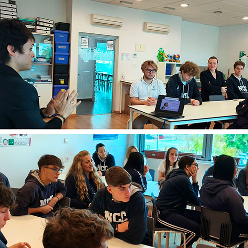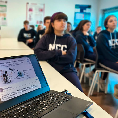 📢Con motivo del Día Internacional de la Mujer y la Niña en la Ciencia🔬, nuestros alumnos de Bachillerato han participado en una inspiradora charla con la investigadora invitada, Dra. Desirée Victoria Montesinos👩🏼‍🔬 de la Universidad UCAM, institución con la que colabora New Castelar College I.S🏫.